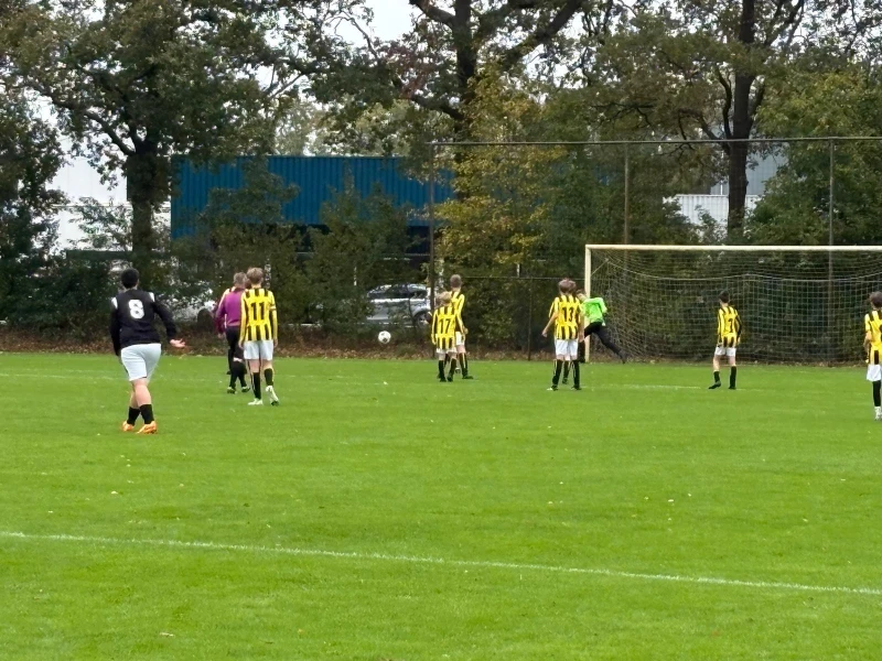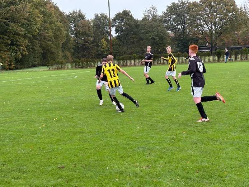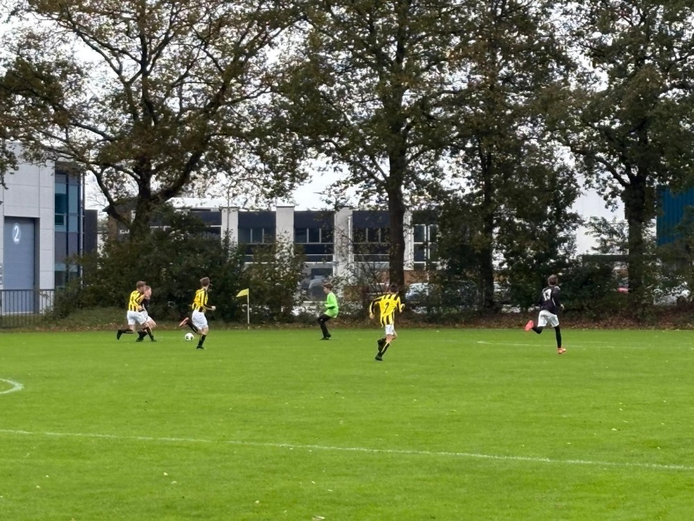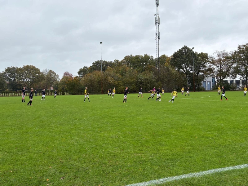 Na een̈ keeperswissel bleven de boys ook in de 2e helft de bovenliggende partij. Met Joep in de spits en Naser in de goal slaagden de boys er maar niet in om de 3 - 1 te produceren. Ook de uitstekend ingevallen Guus was hier zeer dichtbij. En zoals je zo vaak ziet valt de goal dan aan de andere kant. Na een spaarzame uitval viel, na een zeer ongelukkig moment van Naser, een beetje tegen de verhouding in de gelijkmaker.
