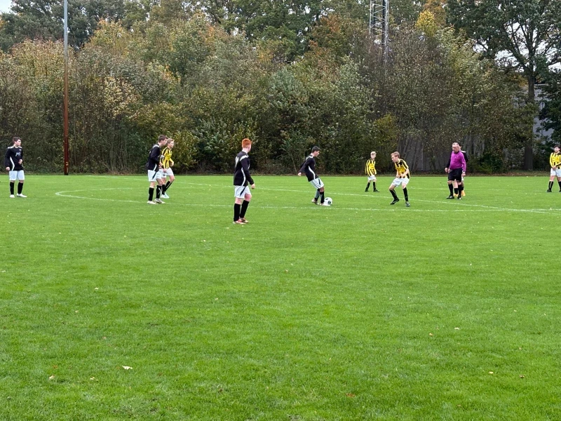 Zonder Scott en Jelt begonnen de boys vol goede bedoelingen aan de wedstrijd. Al snel werd duidelijk dat JO15-2 vandaag de betere was, helaas werd dit echter niet in de score tot uiting gebracht. Na een gemiste kans van Ben, werd het na een slordige en slechte uittrap van Joep zelfs 1 - 0. Al vrij snel werd de schade gerepareerd door Ben, die op fraaie wijze de gelijkmaker tegen de touwen schoot. Nog voor rust zette Teun na een fraaie solo de 2 - 1 op het scorebord.